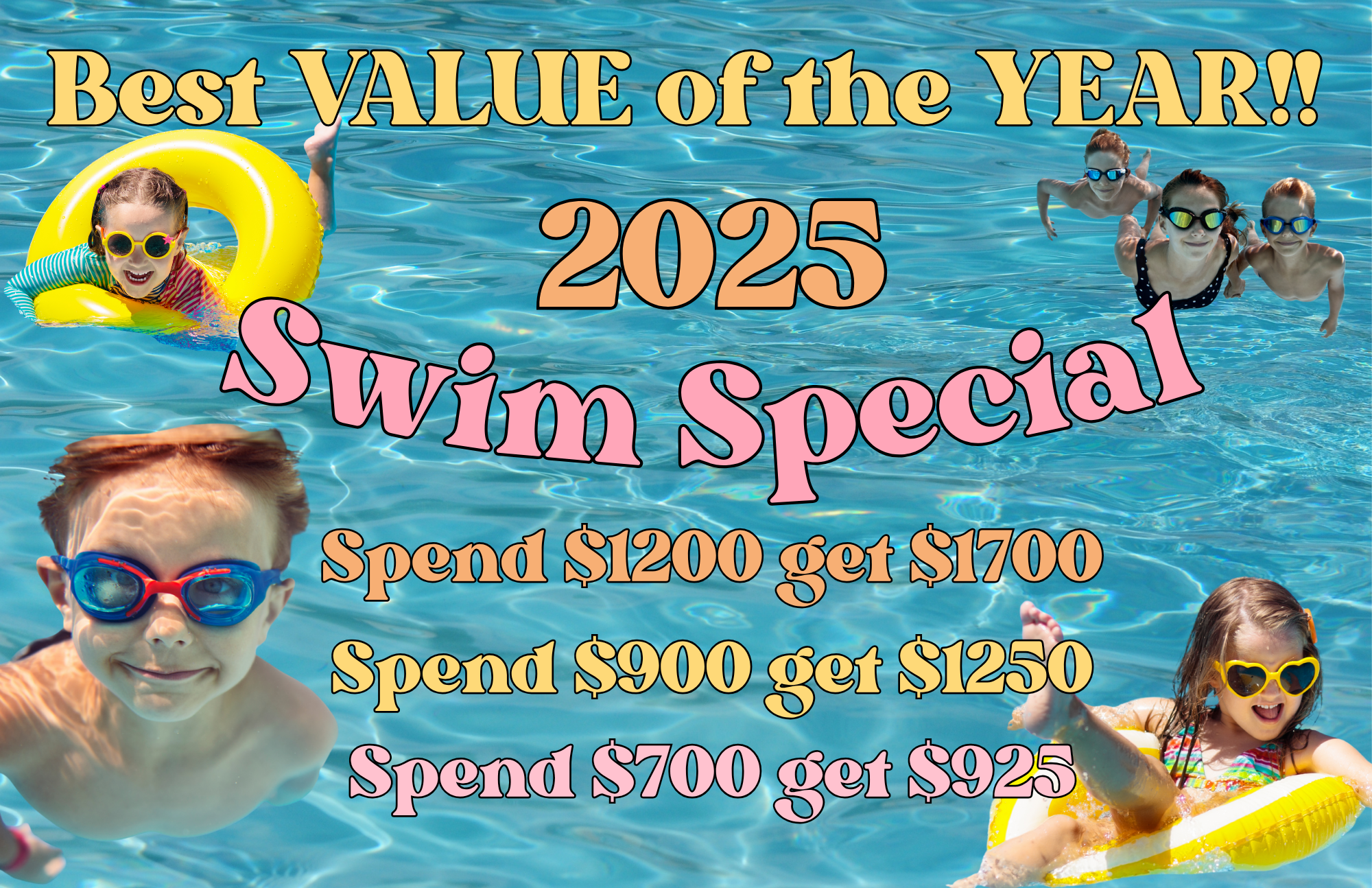 To purchase this year's swim special, call or login to your Parent Portal and enroll in any Swim Special class. We will then allocate your funds to your account!